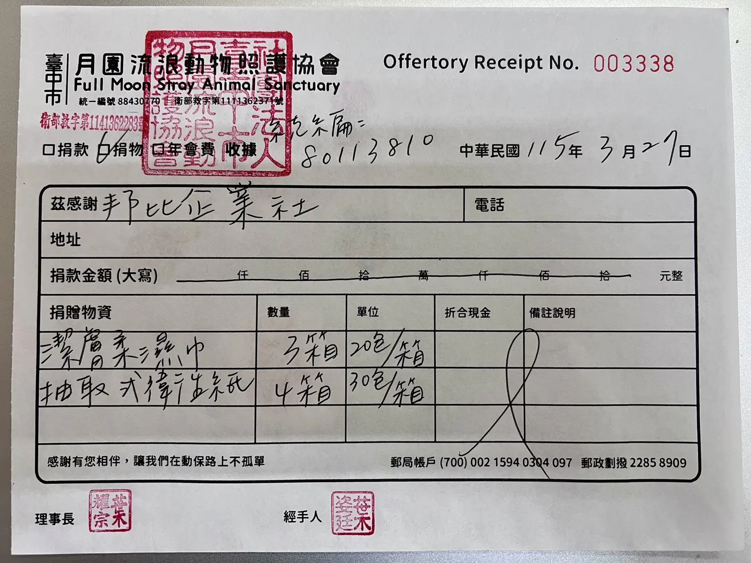 希望透過大家的支持,持續擴大我們的捐助範圍,幫助更多需要溫飽的流浪動物。每一袋捐贈的飼料,都代表著更多的毛小孩不再為下一頓飯而煩惱。